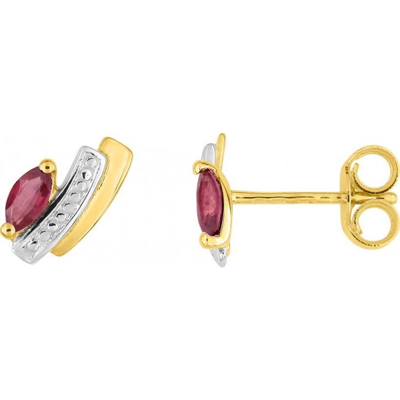 Boucles d'Oreilles bicolore 9 carats, Alliage d'or 375, Rubis