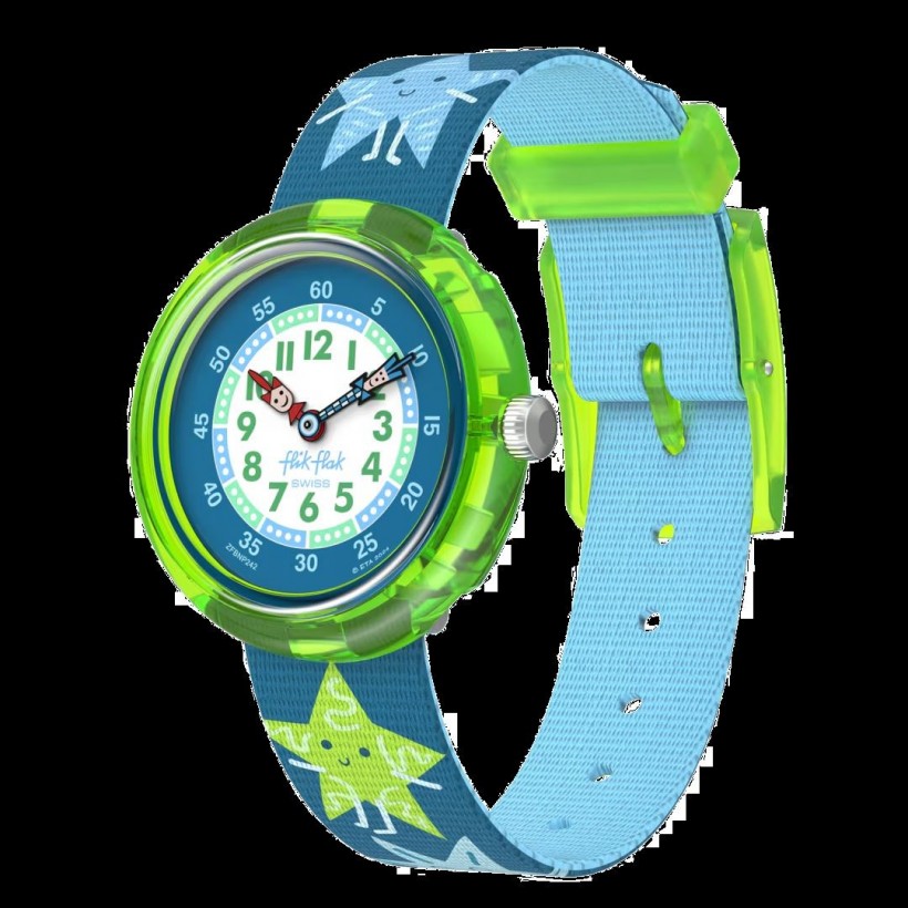 Des visages smiley joyeux en forme d'étoiles illuminent la montre pédagogique pour enfant STARRY GLOW, dotée d'un boîtier et d'une boucle vert fluo lumineux. Idéale pour apprendre aux enfants à lire l'heure, c'est le cadeau parfait !