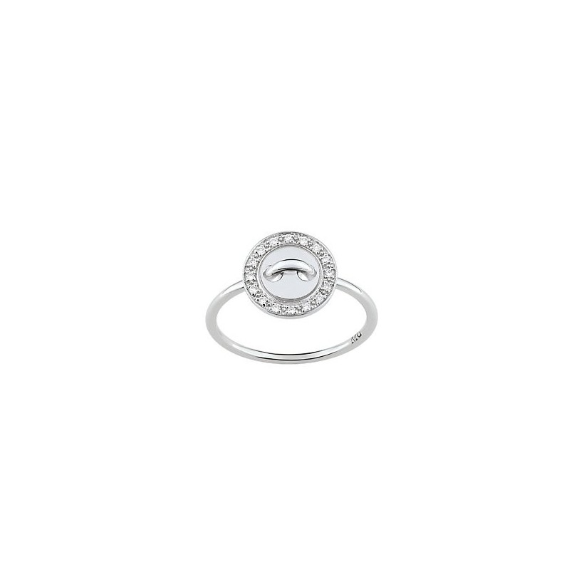 Bague Or gris 750 Millièmes, "MAISON GIRARD" Ligne BOUTONS, diamants 0.08 carats