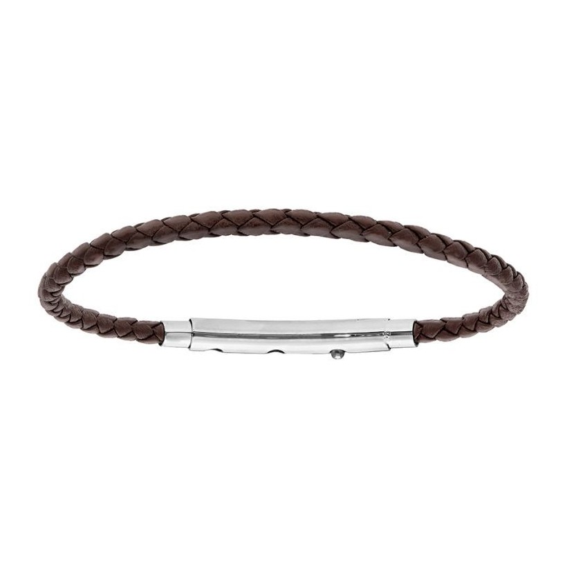 Bracelet acier pour charms medium homme cuir marron, fermoir télescopique reglable de 20cm à 19cm