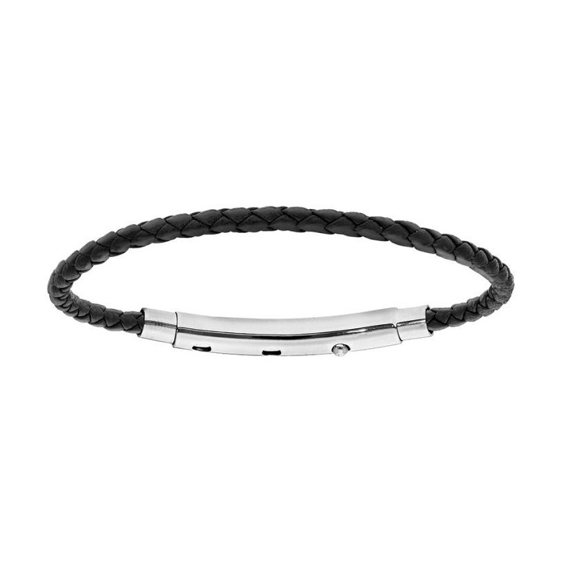 Bracelet Acier pour charms Meduim Homme cuir bovin noir, fermoir téléscopique réglable 17 à 16 cm