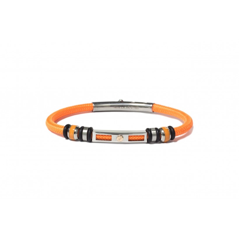 Bracelet NAUTICO, acier grris, vis or rose, corde orange