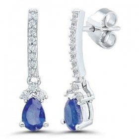 Boucles d'oreilles Or Gris 750 Millièmes, Saphir Poire 1.10 carats, diamants 0.20 carats