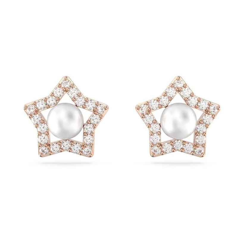 Ces boucles d'oreilles envoûtantes captureront la lumière avec éclat. Issu de la famille Stella, ce design étincelant arbore un élégant mélange de pierres brillantes de taille ronde et d'une perle en cristal nacré centrale sertie sur un placage de ton or rosé. Seules ou superposées avec d'autres paires, elles illumineront toutes vos tenues.