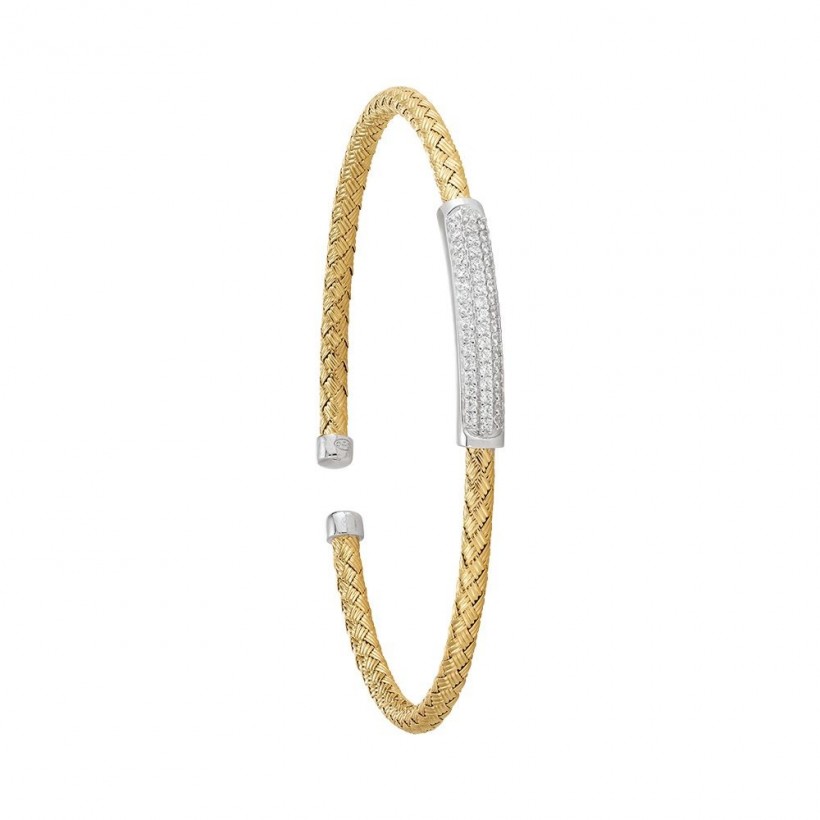 Bracelet Rigide Bicolore Argent et Argent doré 925 Millièmes, CHARLES GARNIER, Collection " LIANES", Oxyde de Zirconium