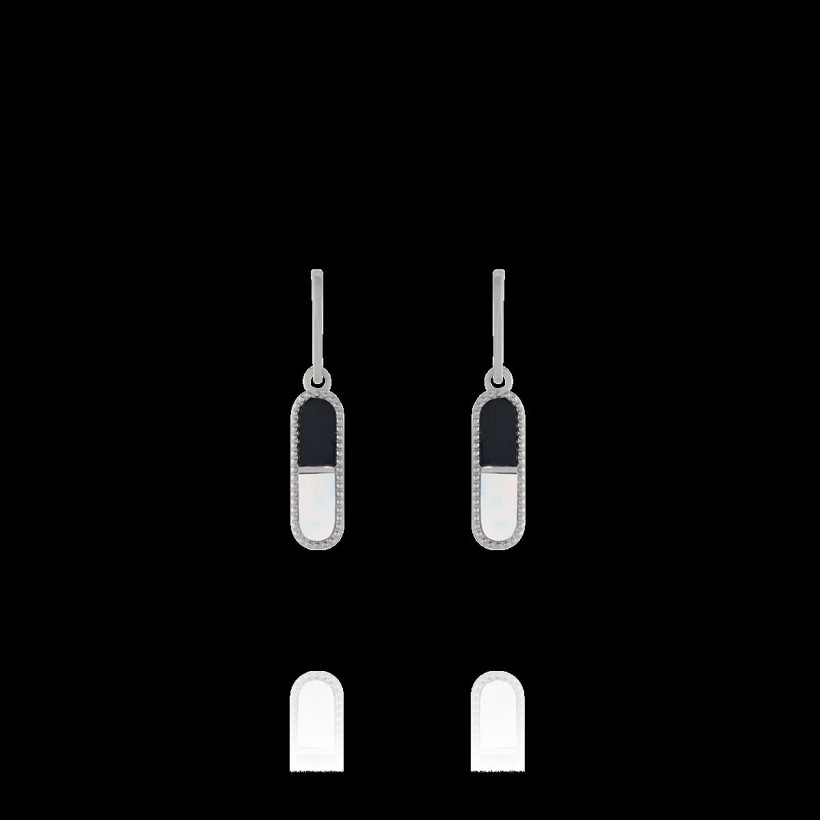 Inspirées de la collection Styles, ces boucles d'oreilles ovales mettent en valeur le contraste saisissant entre l'onyx noir et la nacre blanche, le tout encadré d'argent.
