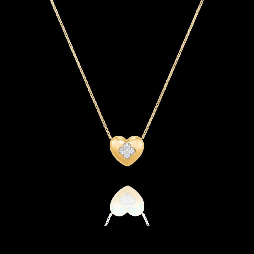 La collection Passion nous présente ce collier mettant en avant un cœur et un trèfle en argent doré,illuminés par des oxydes de zirconium.