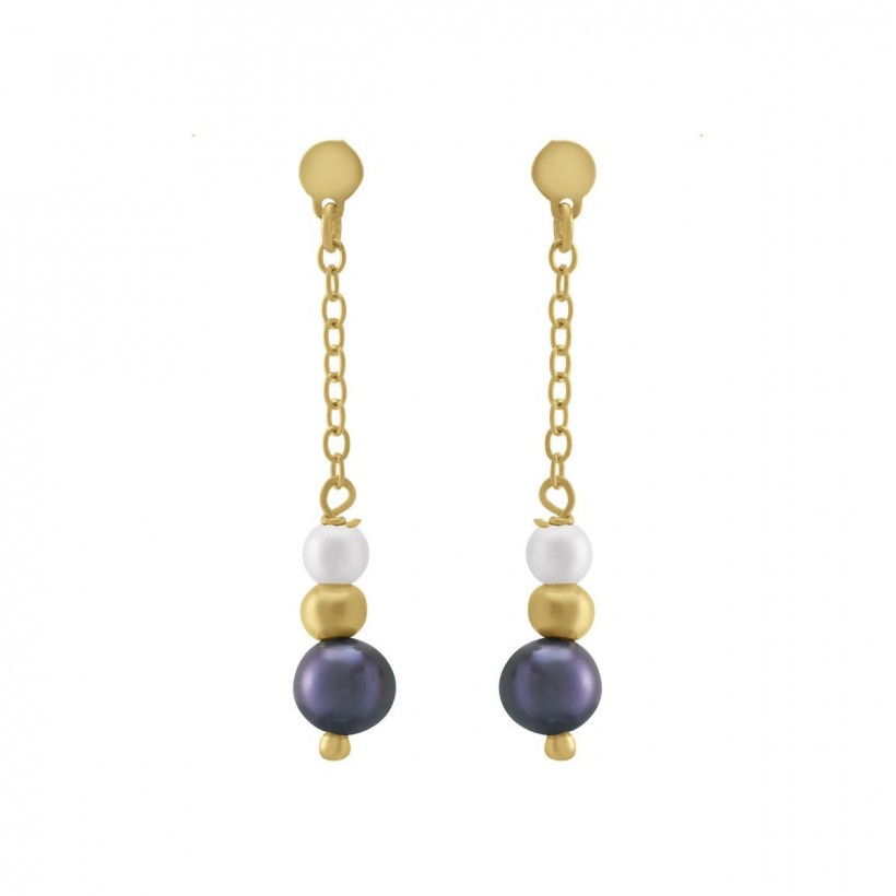 Paire de Boucles d'oreilles 9 carats, Alliage d'Or 375 Millièmes, Collection ATHENA, Perle blanche, Perle Or, Perle Noire, système poussette