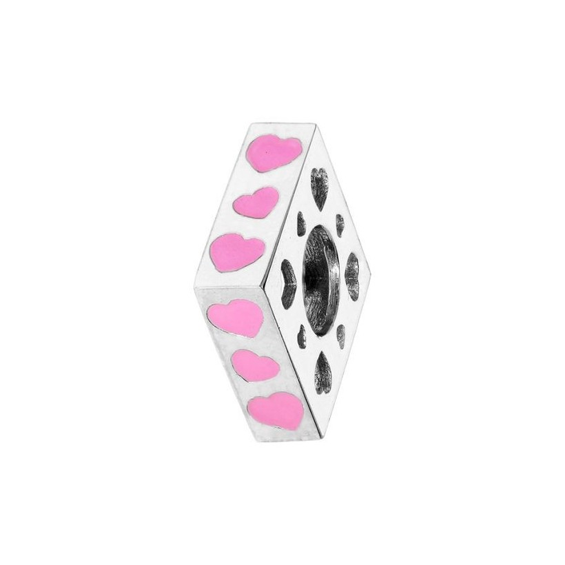 Charm's argent rhodié 925 Millièmes, Carré Résine Rose, Référence C07200