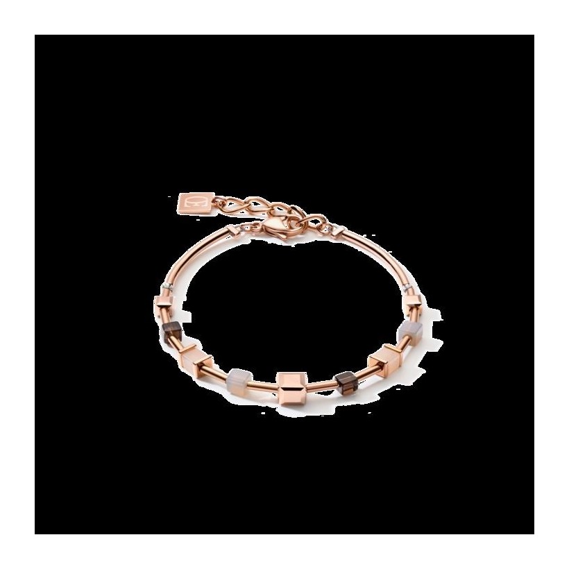 Bracelet GeoCUBE® big Pierres précieuses, Cristaux Swarovski® & acier or rose marron, COEUR DE LION