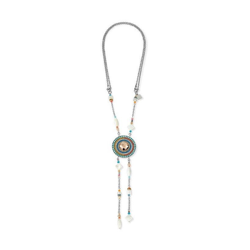 Ce scintillant pendentif inspiré par le chic boho deviendra un élément incontournable de chaque tenue estivale. À porter longue ou courte : de scintillants cristaux arborant de fraîches couleurs et des applications en nacre confèrent une légèreté unique à cette amulette et évoquent une journée inoubliable sur la plage. Elle se combine merveilleusement avec d'autres bijoux pour créer des superpositions très appréciées.