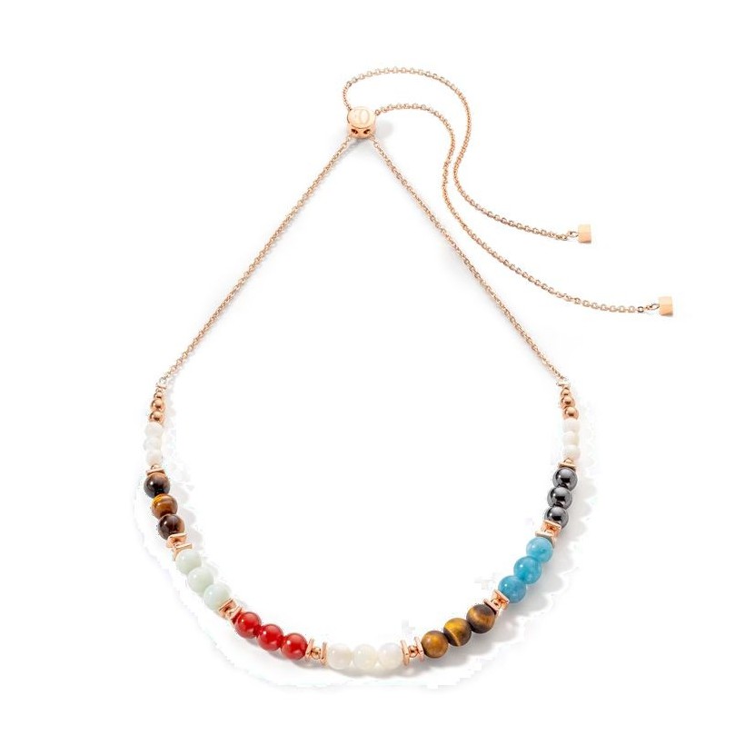 Ajoutez une touche de couleur à votre tenue. Une association de perles multicolores en ?il de tigre, hématite ou nacre combinées à une délicate chaîne en acier inoxydable or rose. Le fermoir coulissant vous permet en toute simplicité d'ajuster la longueur de votre collier selon vos envies.