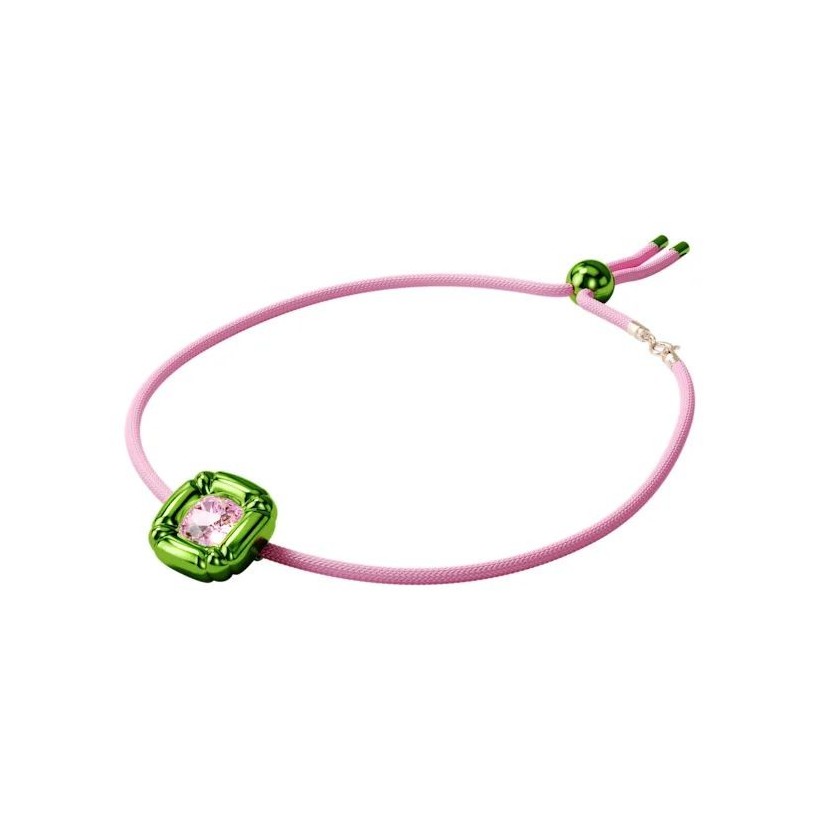 Inspiré du mouvement Pop Art, ce collier présente un cristal central taillé avec la plus grande précision et serti dans une monture brillante. Il est malicieusement suspendu sur un fil tressé rose bonbon. Superposez-le avec d'autres pièces pour un look expérimental ou portez-le seul pour un éclat unique de couleur. Ce collier fait partie de la famille Dulcis et a été pensé par la directrice de création Giovanna Engelbert pour la Collection I.