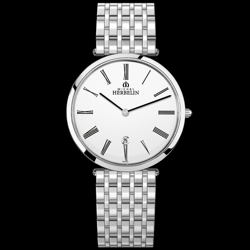 Epsilon, modèle simple et épuré, symbolise la mode française intemporelle du luxe. La finesse des maillions de son bracelet en acier et son design extra plat épouse à merveille les poignets masculins avec élégance. Son cadran marqué de chiffres romains révèle la sobriété de cette montre Michel HERBELIN et confère à l'ensemble un look sophistiqué et moderne.