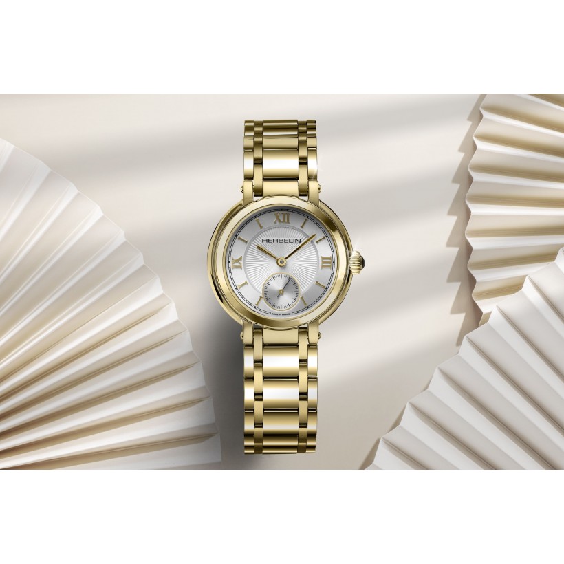 Galet est la nouvelle collection de la maison d'horlogerie Herbelin. Le boitier et le bracelet en PVD or jaune et acier inoxydable apporte une touche de modernité. Cette montre féminine est ponctuée de chiffres romains permettant une lecture idéale du temps. Galet, délicate et épurée, est issue d'un savoir-faire traditionnel français.