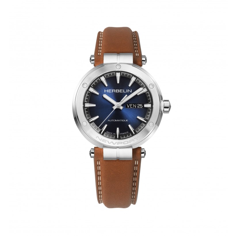 Newport Automatique apparait dans une version trois aiguilles. Le cadran bleu profond est complété d'aiguilles et d'index en acier. Le bracelet en cuir gold apporte une touche de modernité. A l'allure chic et sportive, cette montre est issue d'un savoir-faire traditionnel français