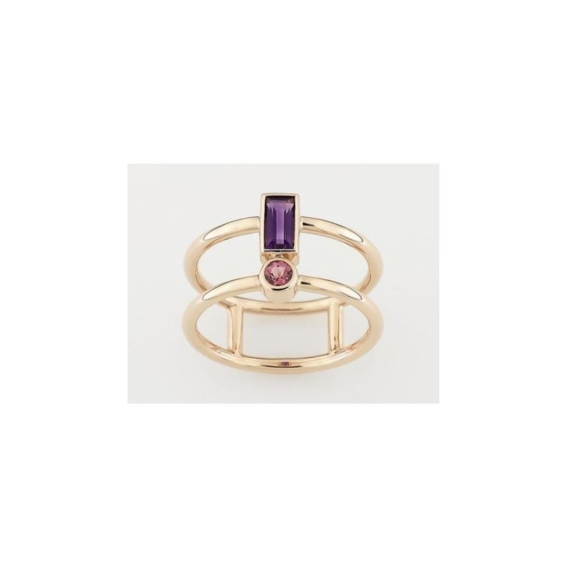 Bague Or Rose 750 Millièmes, Tourmaline Rose et Améthyste, Collection " JOELLI"
