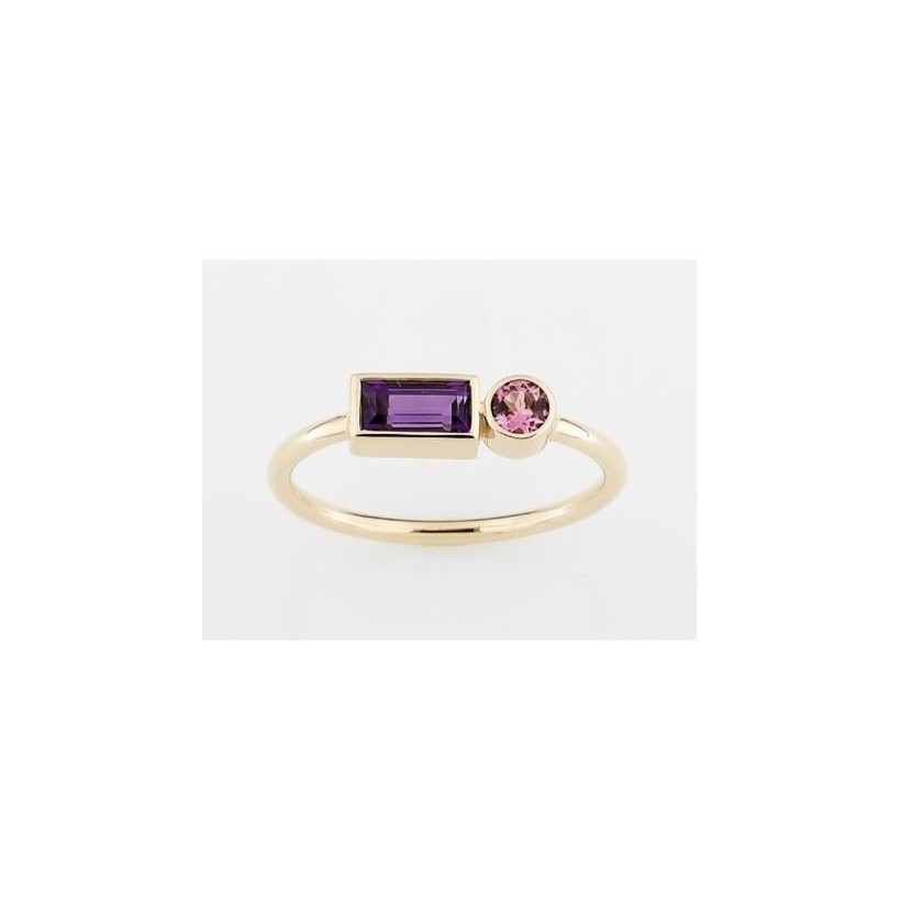 Bague Or Rose 750 Millièmes, Améthyste et Tourmaline rose, Collection "JOELLI"'