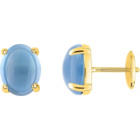 555,00 €Paire de Boucles d'oreilles, Or Jaune 750 Millièmes, Collection JOELLI, Topaze bleue Cabochon, système ALPA