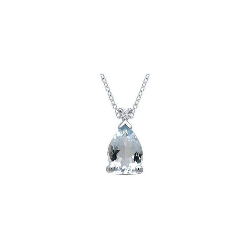 Collier Or Gris 750 Millièmes, Ligne Intemporel, Aigue marine poire, diamants 0.015 carats