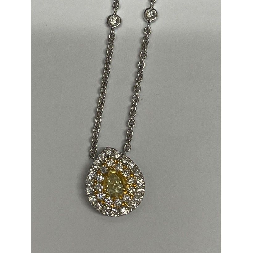 Collier Or Gris 750 Millièmes, Diamant Jaune 0.25 carats et entourage diamants 0.65 carats