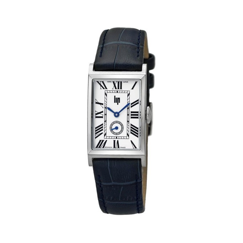 Cette montre LIP T18, animée par un mouvement à quartz, est une réédition du modèle emblématique des années 1930, autrefois offert à Winston Churchill. Avec son boîtier en acier inoxydable 316L (38,5 mm x 21,2 mm), alliant finitions polies et brossées, elle convient parfaitement à tous les poignets, hommes et femmes. Son cadran blanc légèrement ivoire avec une finition mate est orné d'aiguilles bleues de type glaive et d'indexes romains, pour une lecture élégante et intemporelle du temps. Protégé par un verre saphir traité antireflet,