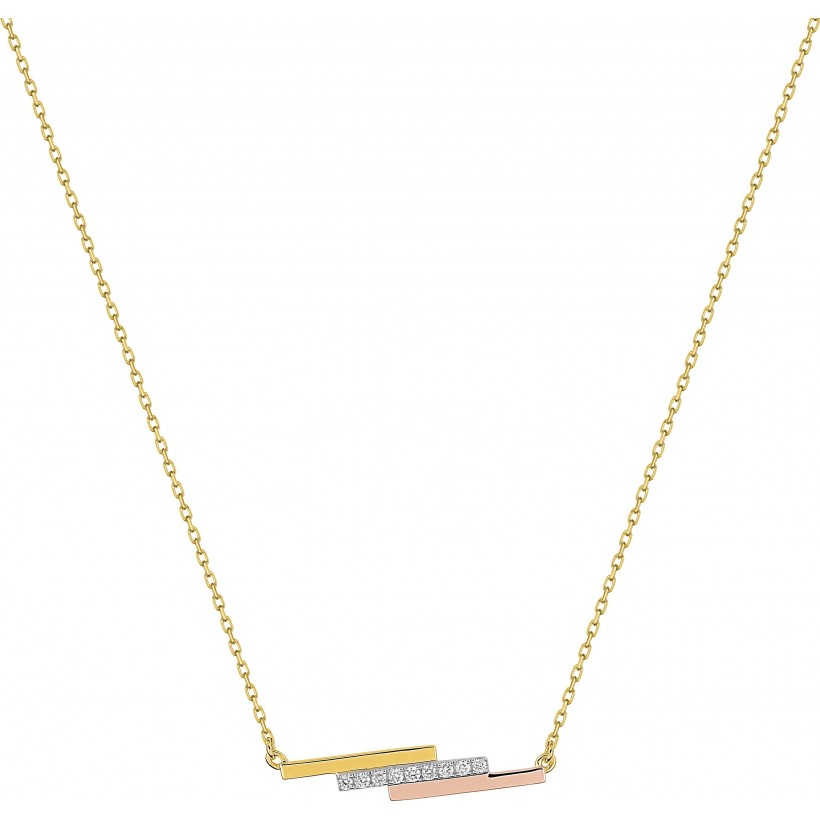 Collier Or 9 Carats tricolore, Alliage d'Or 375 Millièmes, Diamant 0.05 carats