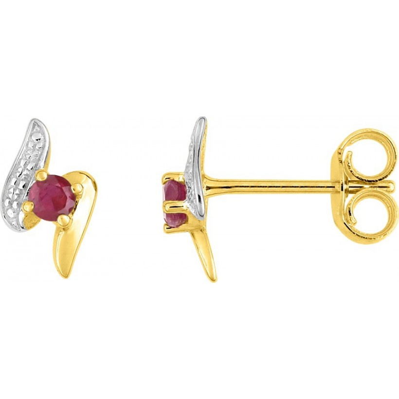 Paire de Boucles d'Oreilles Bicolore 9 carats, Alliage d'or 375, Rubis Diamants