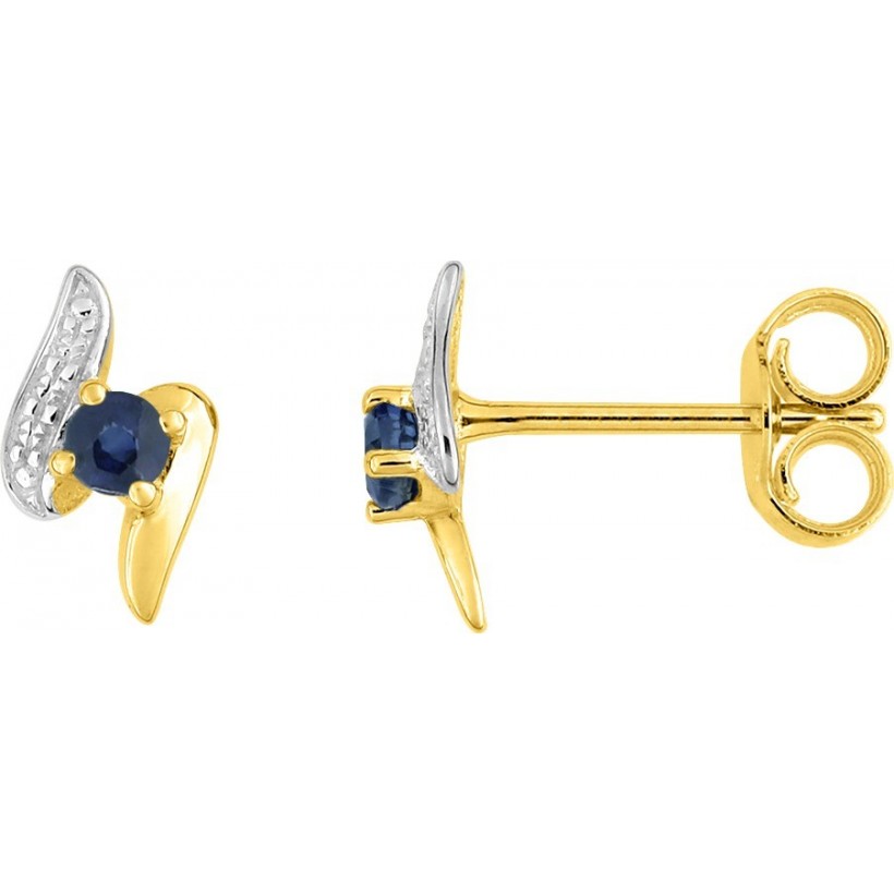 Paire de Boucles d'Oreilles Or 9 carats, Alliage d'or 375, Saphir, Oxyde de Zirconium