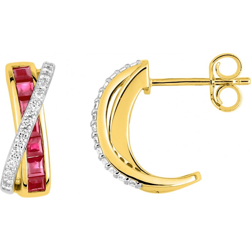 Boucles d'Oreilles Or 9 Carats, Alliage d'Or 375 Millièmes, Rubis, Oxyde de Zirconium