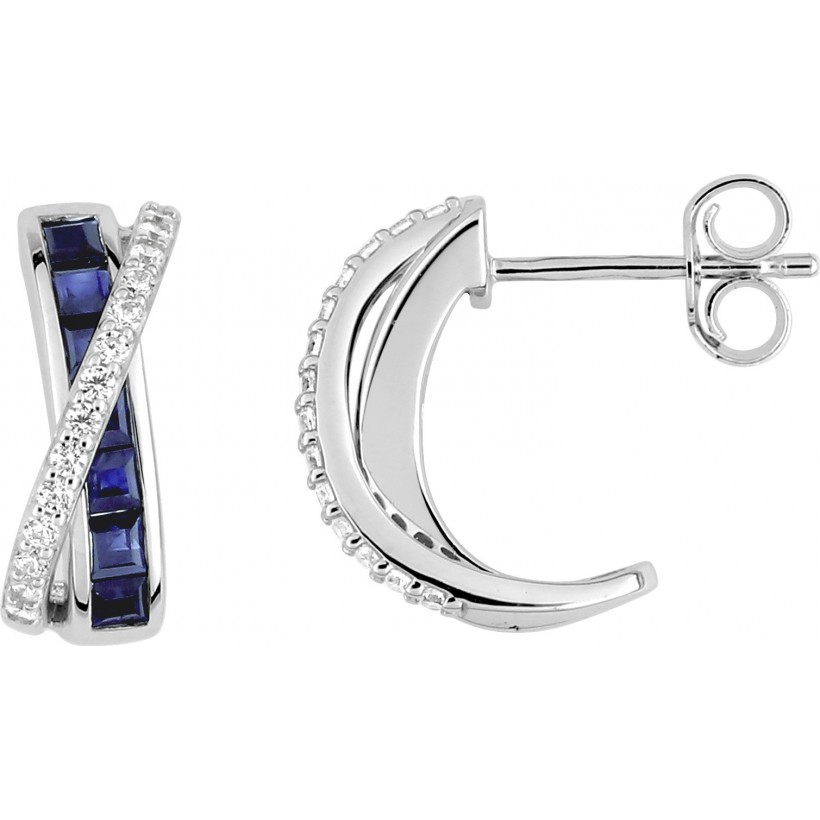 Paire de Boucles d'Oreilles Or Gris 9 Carats, Alliage d'Or 375 Millièmes, Saphir, Oxyde de Zirconium