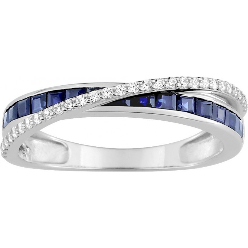 Bague Or Gris 9 carats, Alliage d'Or 375 Millièmes, Saphir, Oxyde de Zirconium