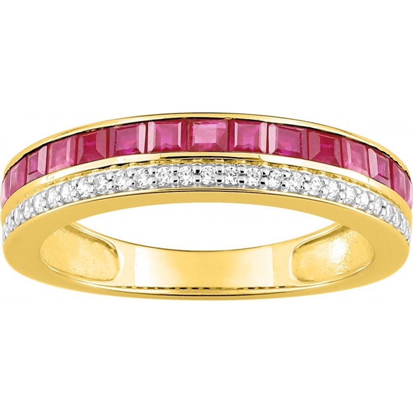Bague Or 9 Carats, Alliage d'Or 375, Rubis et Oxyde de Zirconium
