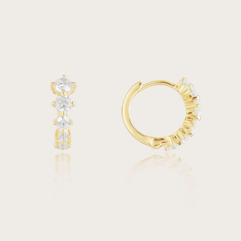 Paire de Boucles d'oreilles Or Jaune 9 carats, 375 Millièmes, Collection PIA, Ligne ECLAT, Oxyde de Zirconium