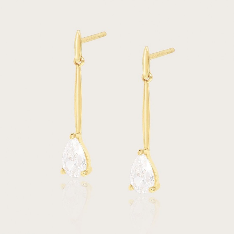 Paire de Boucles d'oreilles pendantes, Or jaune 375 millièmes, 9 carats, Collection PIA, Ligne ECLAT, Oxyde de Zirconium