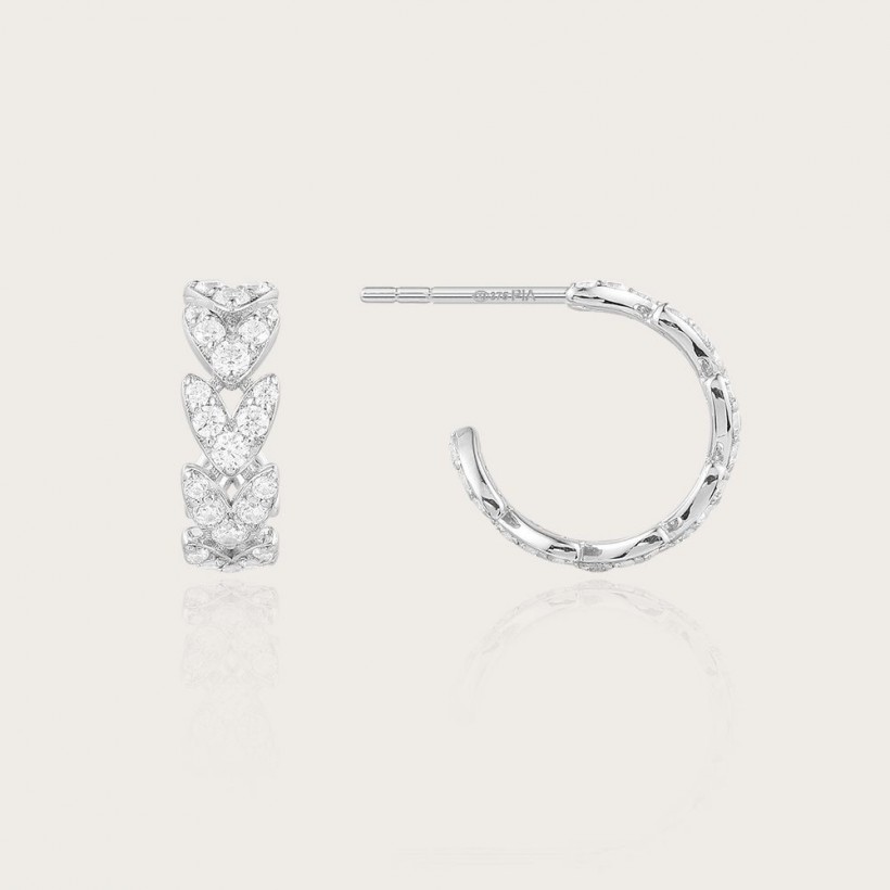Paire demi créoles Or 9 carats 375 Millièmes, Collection PIA, Oxyde de Zirconium