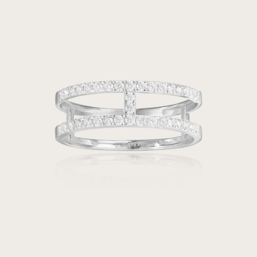 Bague Or gris 375 Millièmes, 9 carats, Collection PIA, Oxyde de Zirconium