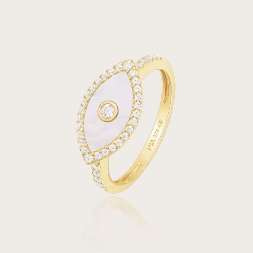 Bague Or Jaune 375 Millièmes, Collection PIA, naacre et oxyde dezirconium