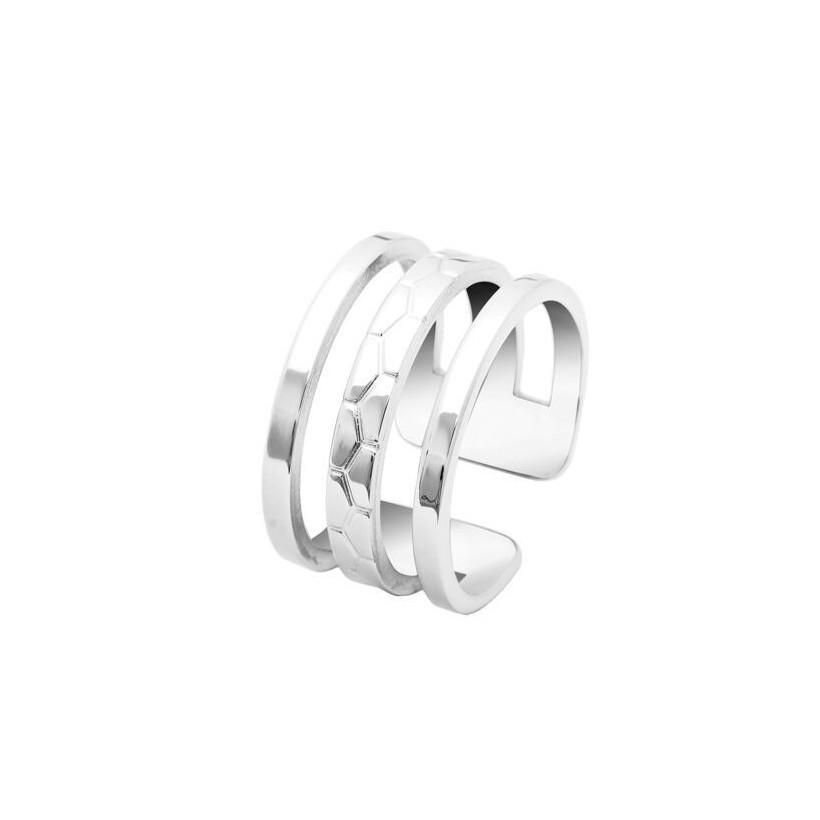 Craquez pour la bague argentée Ariane multi-anneaux et son jeu de textures lisses et écailles. Cette bague ni trop discrète ni trop imposante sera parfaite pour les amoureuses de bijoux d'exception. Disponible en trois tailles différentes, trouvez la bague Ariane qui habillera votre doigt