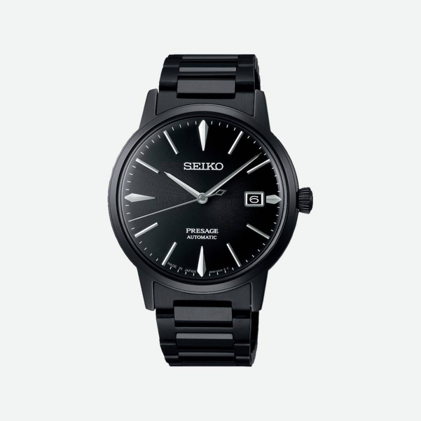 La montre SRPJ15J1 de la collection Presage Cocktail est facilement reconnaissable à son cadran noir texturé. Il est inspiré du Cocktail Black Velvet et son motif est inspiré par la lumière qui passe au travers des anciens verres à Cocktail. Accompagnée d'un bracelet noir en acier inoxydable revêtement titane carboné pour un effet habillé tout en restant confortable, cette montre automatique est parfaite pour toutes les occasions.