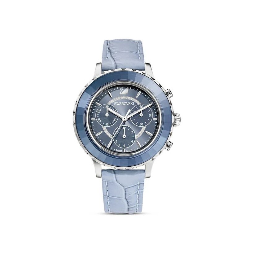 Octea Lux Chrono est une référence de l'horlogerie et de la création en cristal, ses coloris très tendance scintillent avec une intensité exceptionnelle. Le boîtier en acier inoxydable apporte une touche sport au très chic cadran en cristal Swarovski qui scintille radieusement en bleu denim. Le cadran assorti et le bracelet en cuir véritable embossé crocodile complètent l'harmonie du style. Affichant trois cadrans et le cygne Swarovski à 12 heures, ce chronographe moderne est d'un luxe parfait. Fabriqué en Suisse, étanche jusqu'à 50 m.