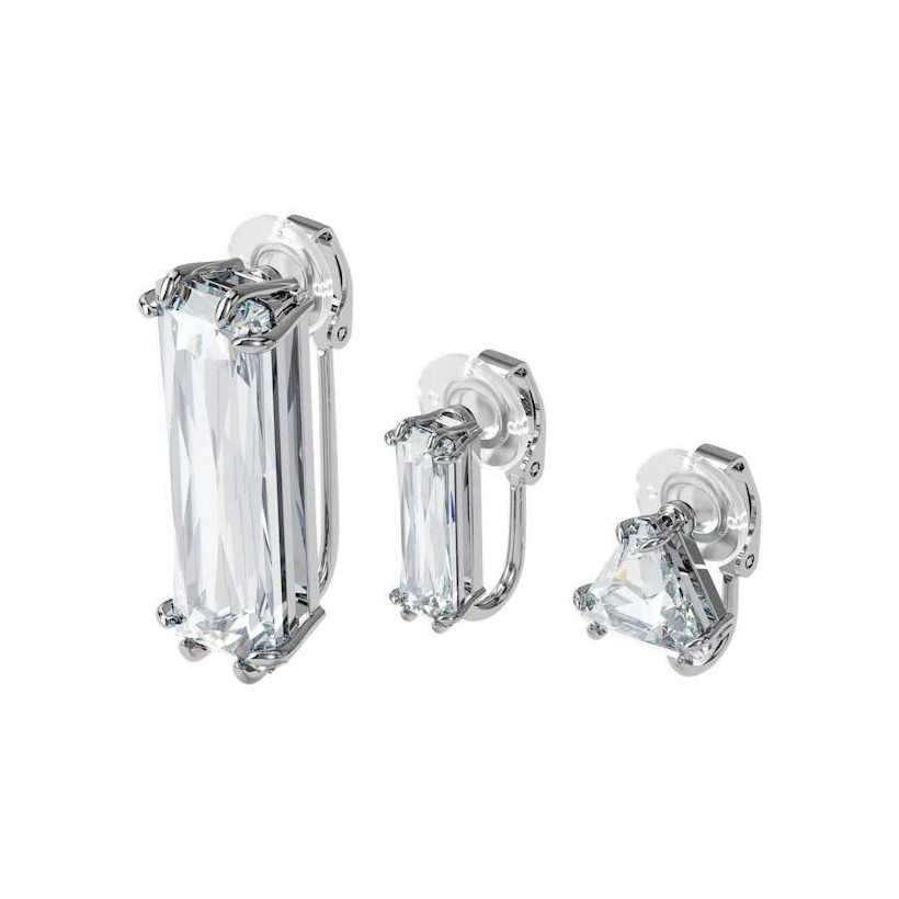 Cet assortiment de trois ear cuffs se compose d'un mélange de cristaux incolores de différentes tailles. Monté dans des sertissages griffes modernes en métal rhodié, cet ensemble est infiniment versatile et conçu pour être porté n'importe où sur l'oreille. Portez ces bijoux d'oreilles en trio, en duo ou en mono, ou associez-les avec d'autres boucles de la Collection I, le choix vous appartient. Ce bijou est un set de trois mono boucles d'oreilles. Elles sont vendues ensemble et constituent un assortiment dépareillé. Cet assortiment de trois ear cuffs fait partie de la famille Mesmera et a été pensé par la directrice de création Giovanna Engelbert pour la Collection I.