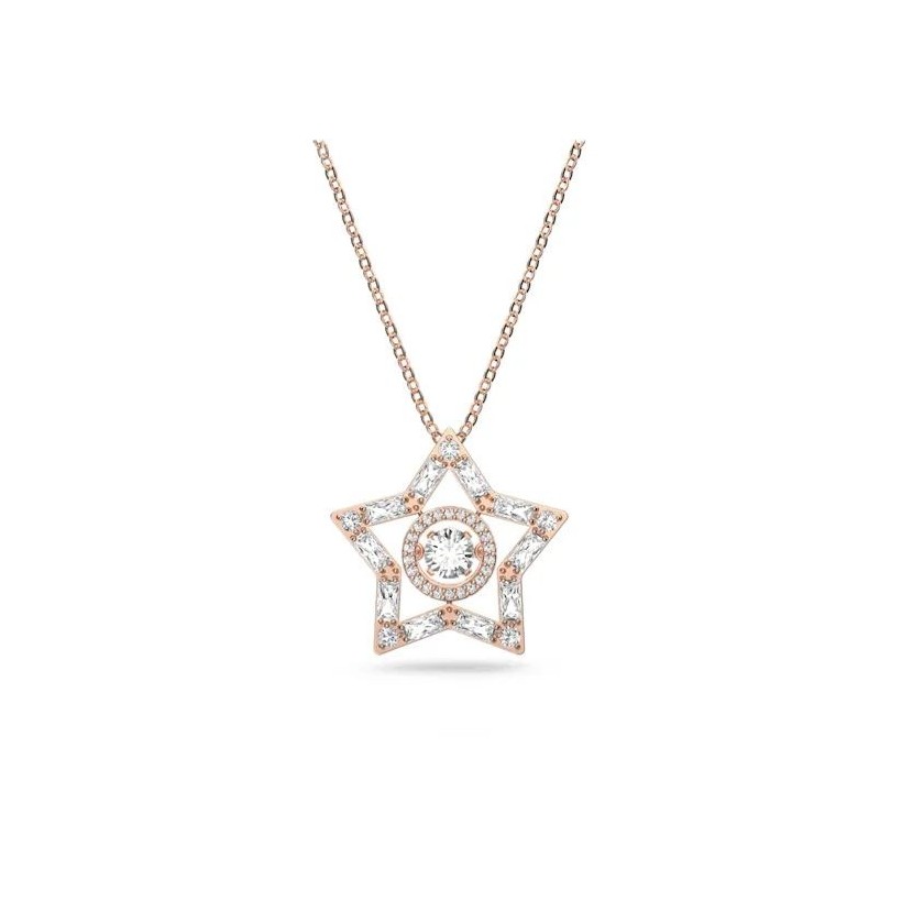 L'étoile est un emblème précieux de Swarovski, inspirée par la magie des paysages autrichiens, et constitue le motif central de ce délicat pendentif. Avec sa touche finale constituée d'une pierre dansante, ce collier en placage rose doré est une interprétation contemporaine d'un riche héritage joaillier. Vous pouvez le porter seul ou avec le bracelet et les boucles d'oreilles assortis de la famille Stella. Ce pendentif fait partie de la famille Stella et a été pensé par la directrice de création Giovanna Engelbert pour la Collection II.