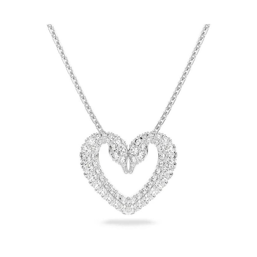 Incarnant la beauté de la nature avec son design à deux cygnes, ce pendentif en forme de cœur symbolise le pouvoir de l'amour éternel, ainsi que le renouveau donné à l'emblématique cygne Swarovski. Il présente un pavage raffiné de cristaux sertis sur une chaîne en métal rhodié. Un choix radieux intemporel pour vos tenues quotidiennes. Ce pendentif fait partie de la famille Una et a été pensé pour la Collection III.
