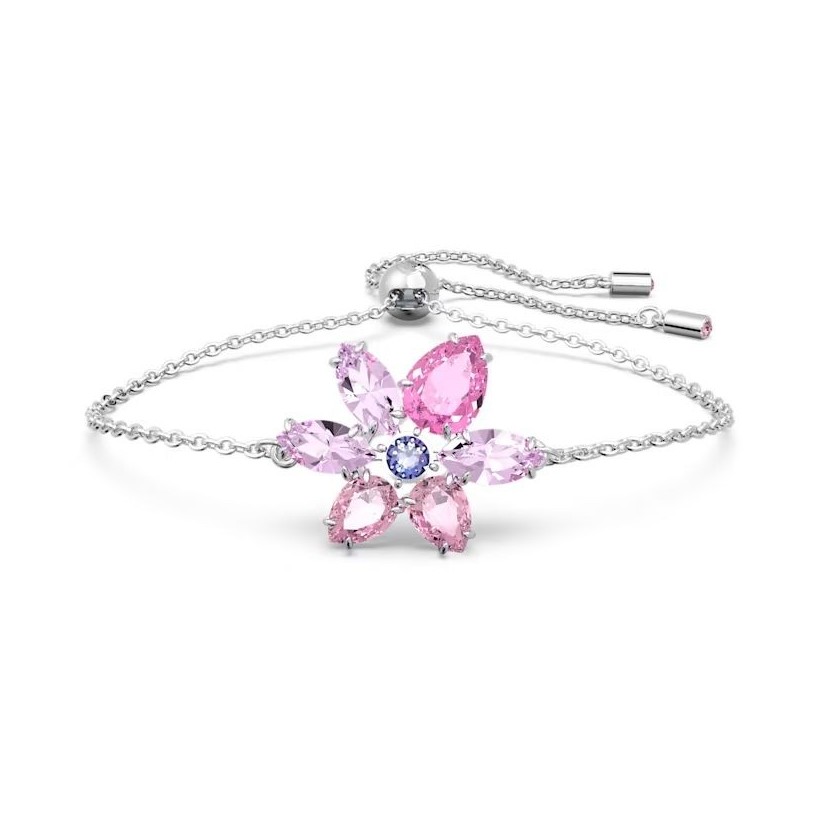 Cette fleur éclatante est un trésor à chérir tous les jours. Son design floral délicat est composé de pétales créés dans un mélange de cristaux extraordinaires, avec une multitude de tons violets intenses pour apporter profondeur et éclat. Son bracelet en métal rhodié est pourvu d'un fermoir coulissant pour assurer un confort absolu.