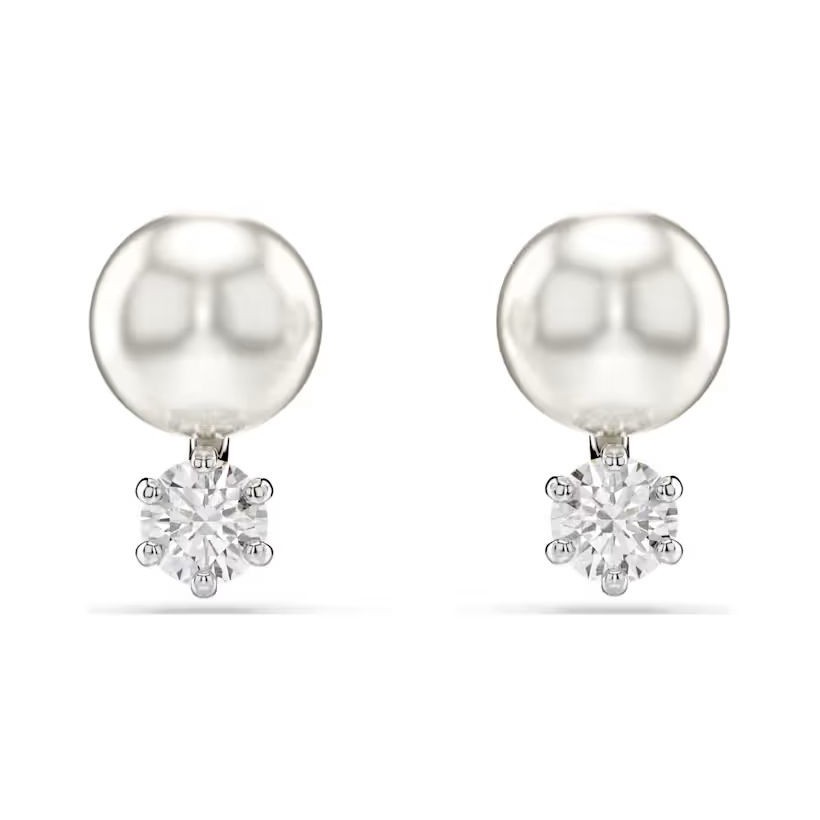 Ces superbes clous d'oreilles percées sont une interprétation inédite de la boucle d'oreille à perle classique. Luxueuses et lumineuses, chaque pièce en métal rhodié présente une Crystal Pearl de Swarovski blanche et un Swarovski Zirconia taille ronde. Portez-les avec un pendentif Matrix assorti pour plus d'éclat.