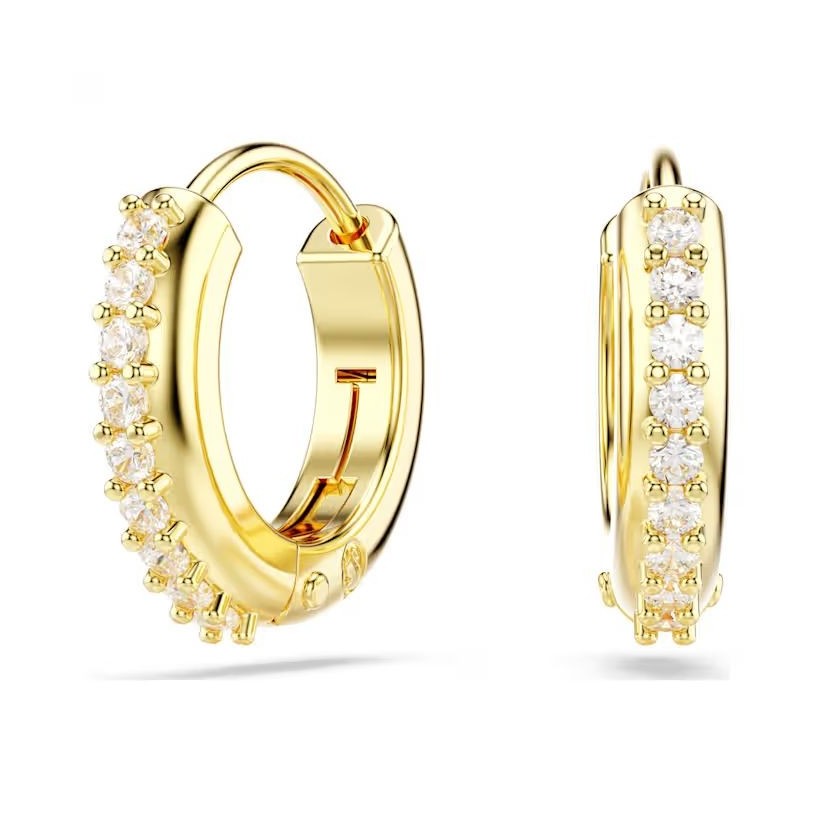 Révélez votre style avec ces mini-créoles brillantes. Ces boucles d'oreilles percées au placage de ton or sont ornées de Swarovski Zirconia incolores, sertis griffes sur la section extérieure. Une manière naturelle d'insuffler à votre look un éclat instantané et raffiné.