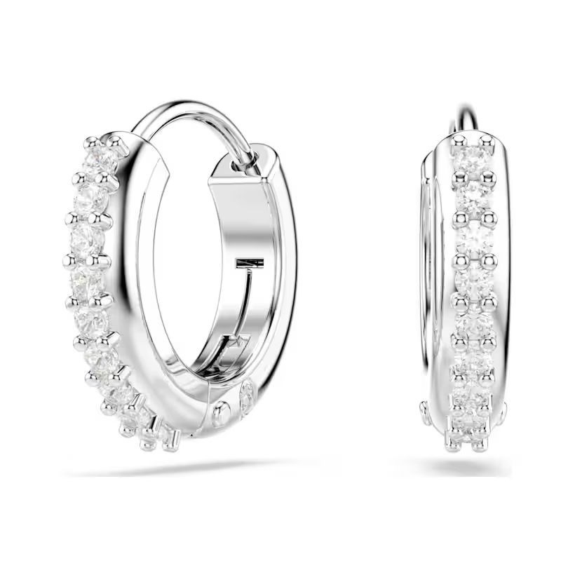 Révélez votre style avec ces mini-créoles brillantes. Ces boucles d'oreilles percées en métal rhodié sont ornées de Swarovski Zirconia incolores, sertis griffes sur la section extérieure. Une manière élégante d'illuminer toutes vos tenues, de journée comme de soirée.
