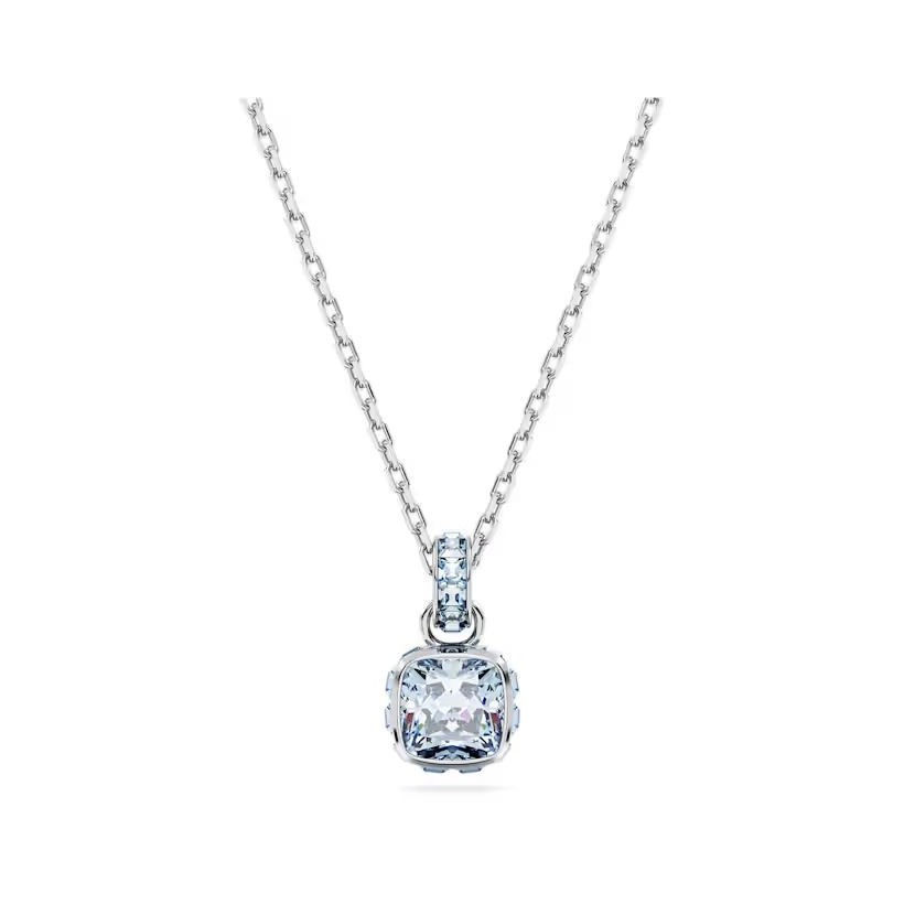 Ce pendentif délicat s'inspire de la pierre de naissance du mois de mars. Suspendu à une fine chaîne aux maillons scintillants ornés de cristaux, ce bijou en métal rhodié s'habille d'une pierre unique de taille carrée dans une teinte bleu aigue-marine, qui représente calme et sérénité. Ce bijou imprégné de sens fera un cadeau d'anniversaire magique, ou une belle pièce à s'offrir pour célébrer un moment important pour vous.