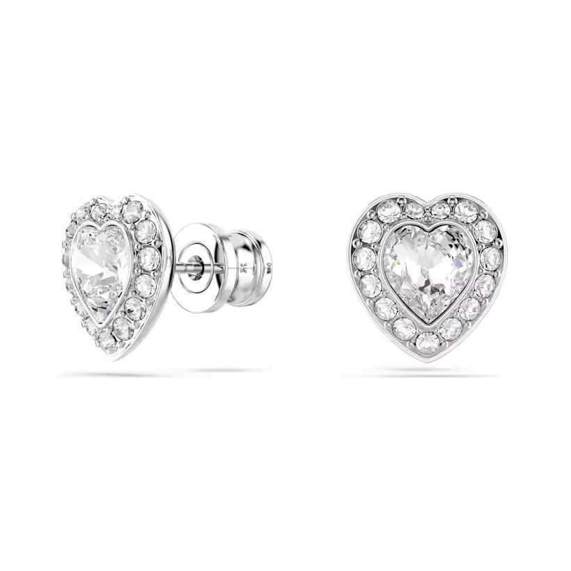 Deux cœurs ne font plus qu'un avec cette paire joyeuse de clous Swarovski. Chaque pièce en métal rhodié présente un cristal en forme de cœur, entouré d'un halo scintillant de pavé incolore. Offrez-les avec le pendentif assorti pour un cadeau d'amour éclatant